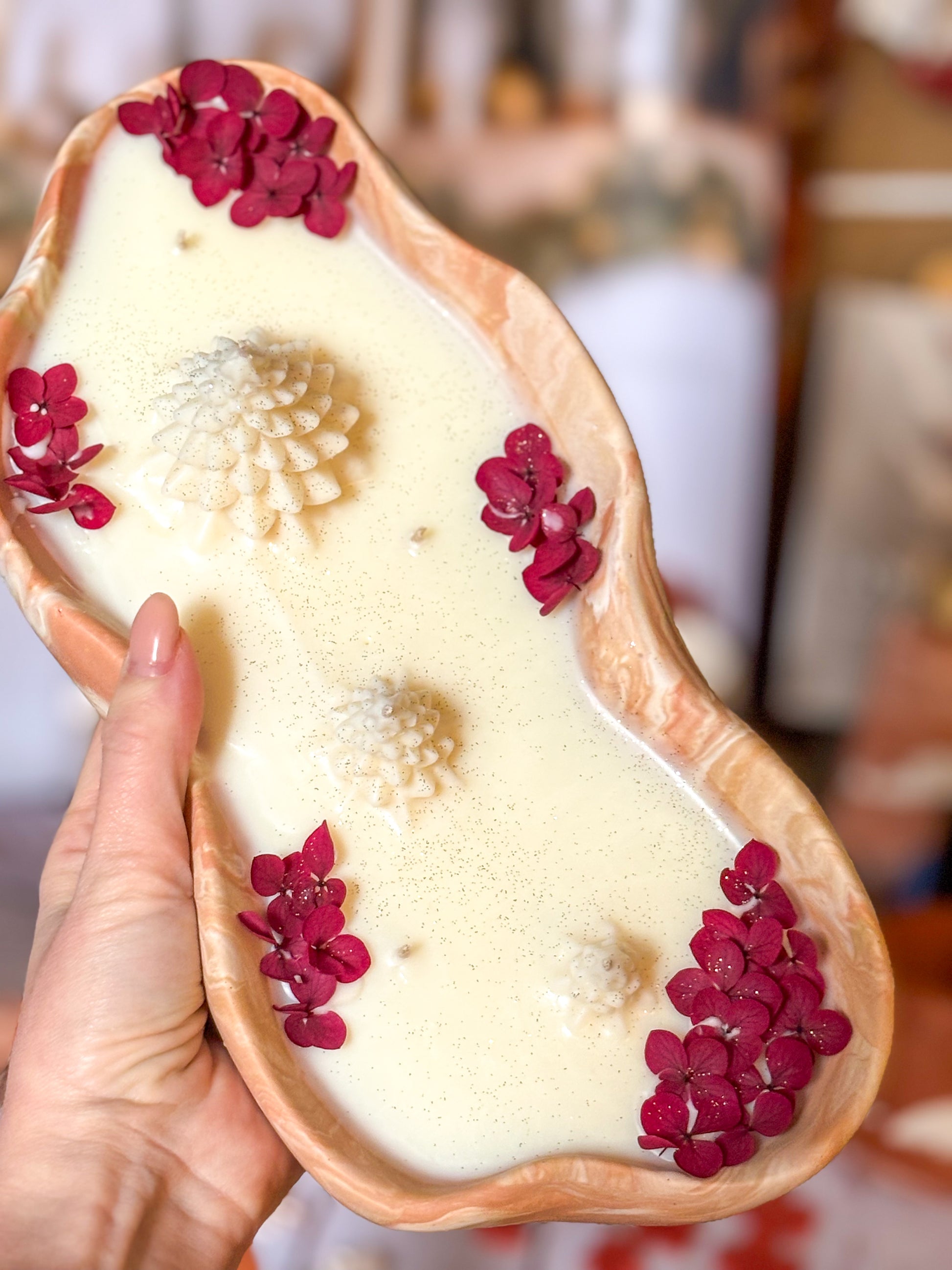 Dans ce joli pot, une bougie au parfum de cookies chocolat avec des jolies fleurs séchées, parfait pour une ambiance féerique .