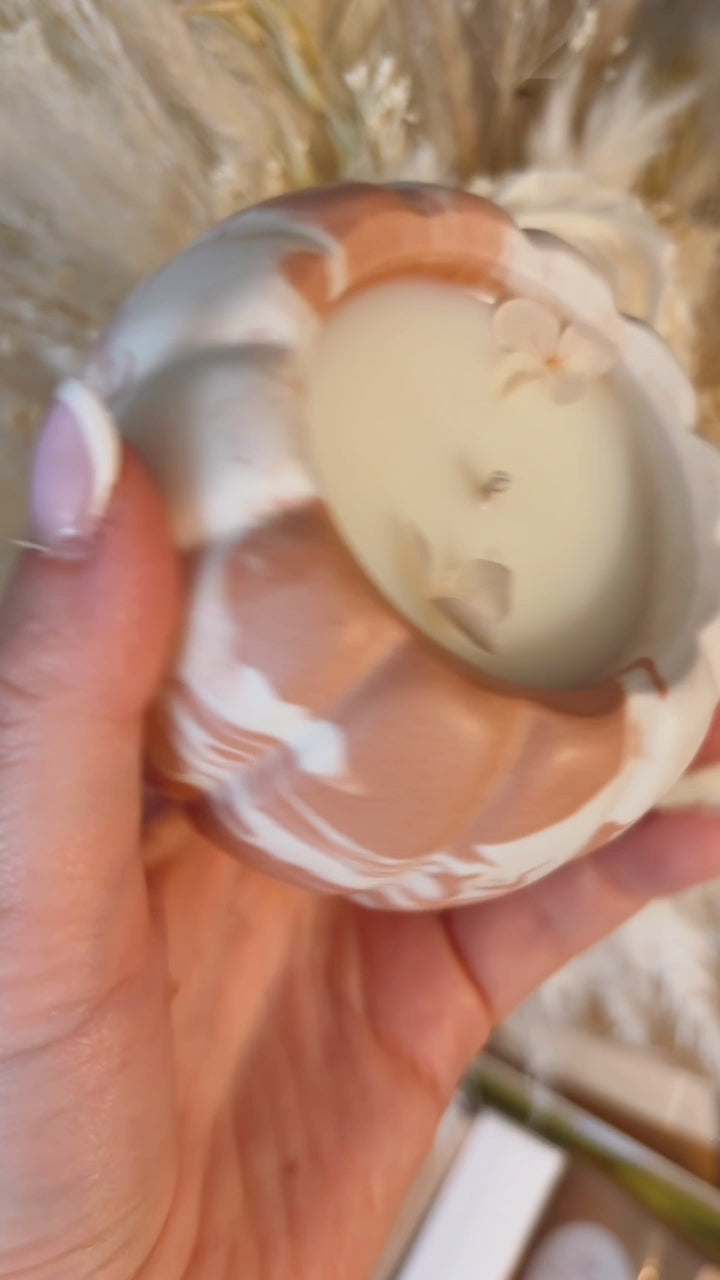 Concernant les bougies citrouilles bicolores, l’effet marbré varie à chaque pot. Cela rend vos bougies uniques.