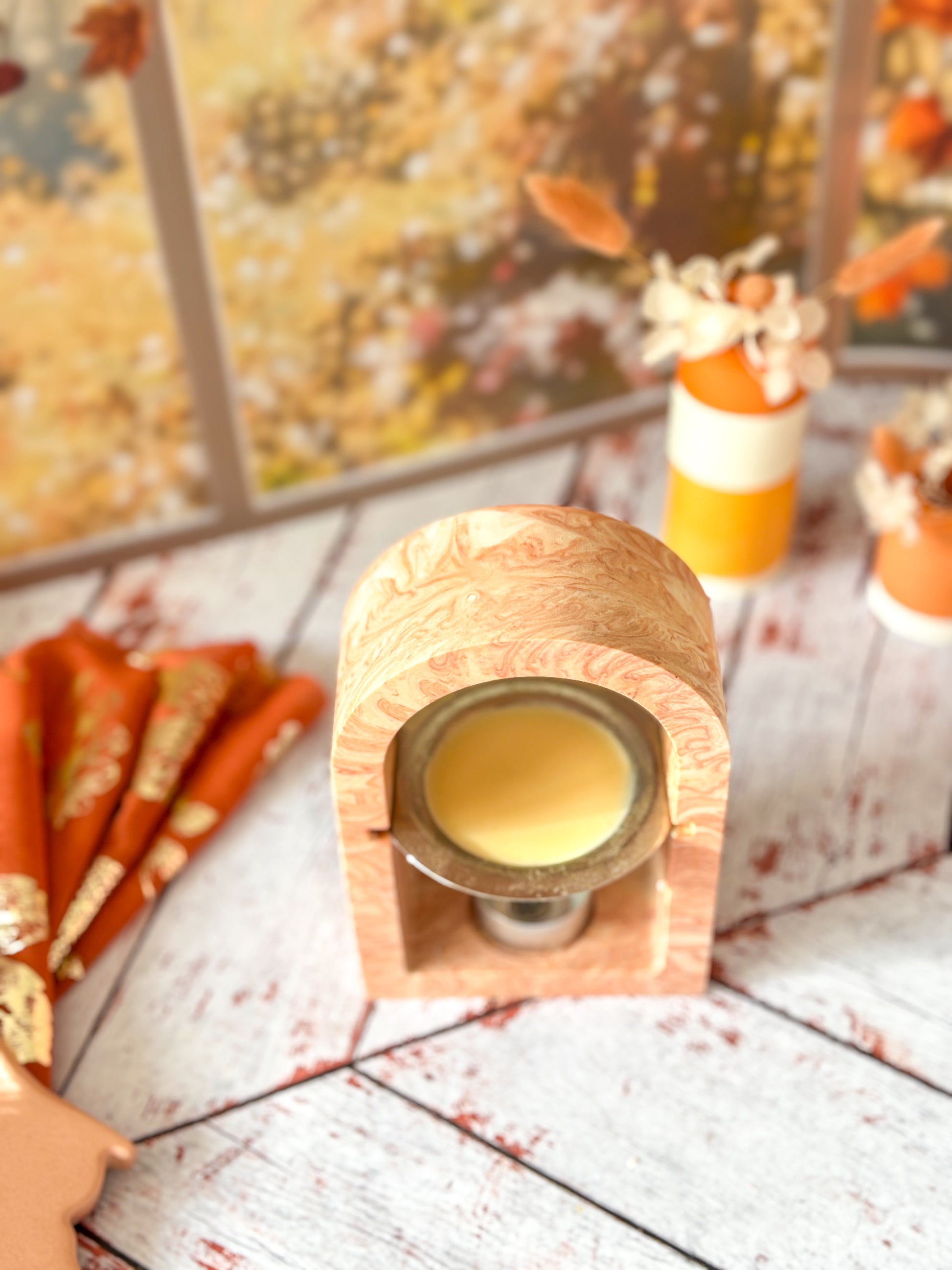 Ces brûleurs sont entièrement fabriqués à la main, ce qui signifie que vous ne recevrez jamais exactement le même modèle que celui en photo. Les nuances, les motifs de marbrage et les finitions varient naturellement d’une création à l’autre. C’est ce qui en fait tout le charme : vous aurez une pièce réellement unique, non industrielle.
