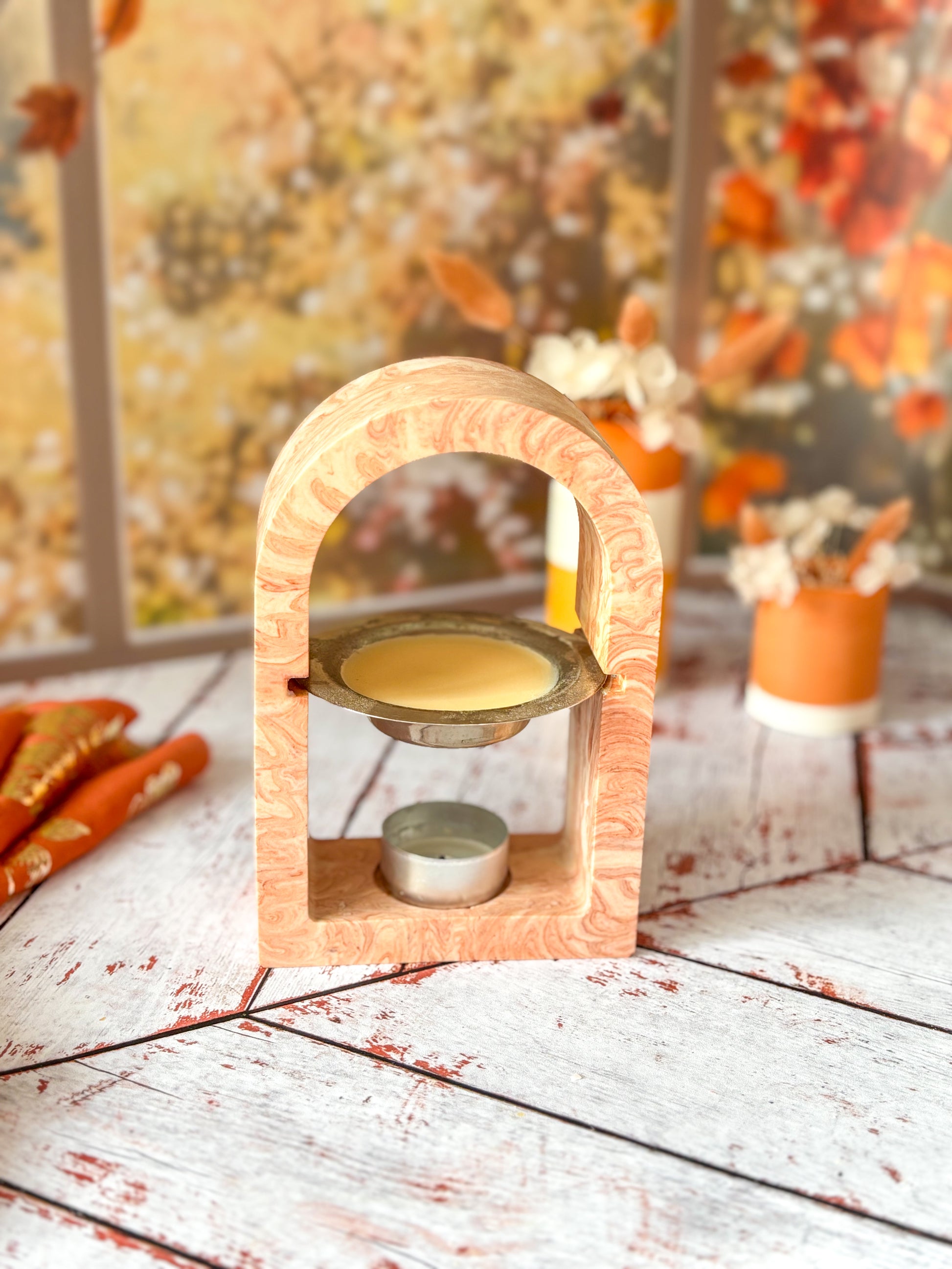 Apportez une touche d’originalité et de raffinement à votre décoration avec ce brûleur en jesmonite au design d’arc, fait main avec soin. Son format en fait un objet à la fois pratique et esthétique, idéal pour accueillir vos fondants parfumés.