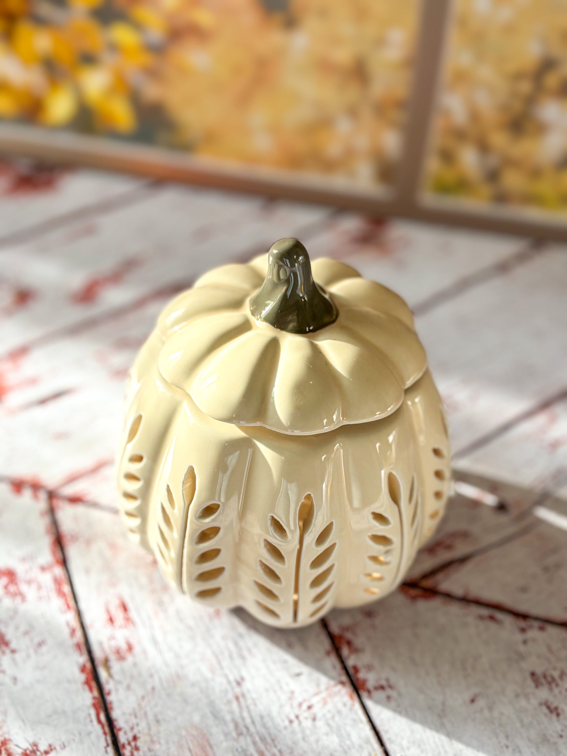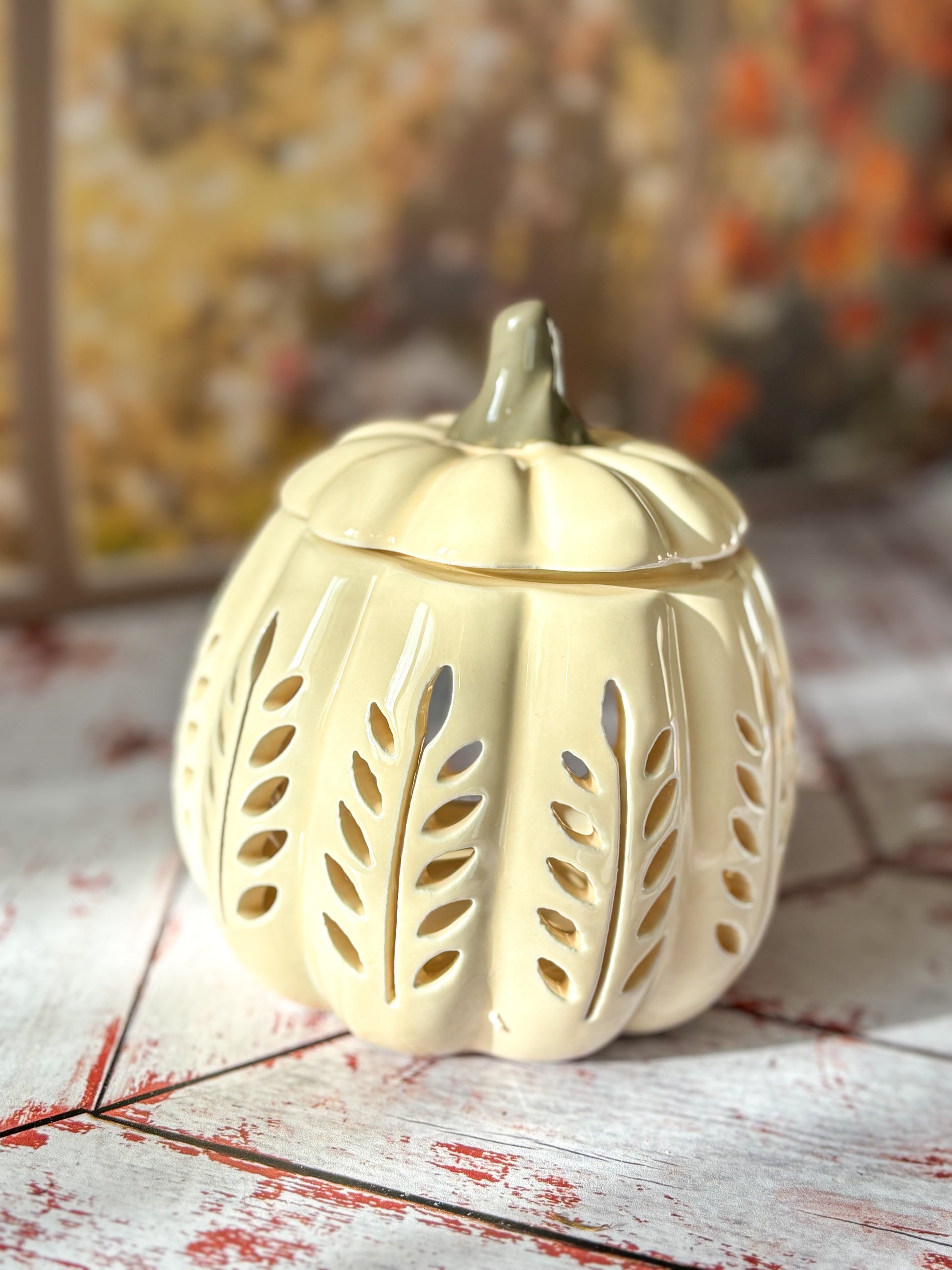 Ajoutez une touche de magie à votre maison avec ce brûleur de fondant en forme de citrouille blanche et laissez-vous envelopper par des parfums envoûtants !