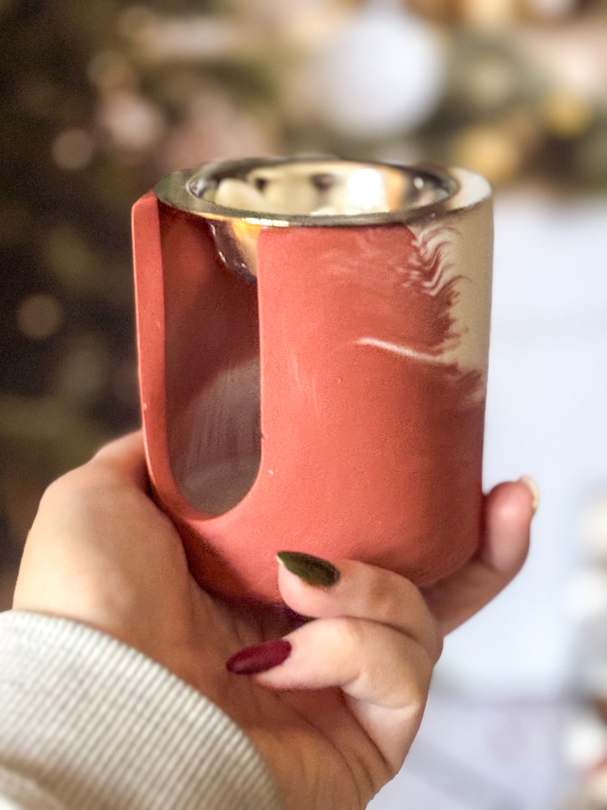 Ces brûleurs sont entièrement fabriqués à la main, ce qui signifie que vous ne recevrez jamais exactement le même modèle que celui en photo. Les nuances, les motifs de marbrage et les finitions varient naturellement d’une création à l’autre. C’est ce qui en fait tout le charme : vous aurez une pièce réellement unique, non industrielle.