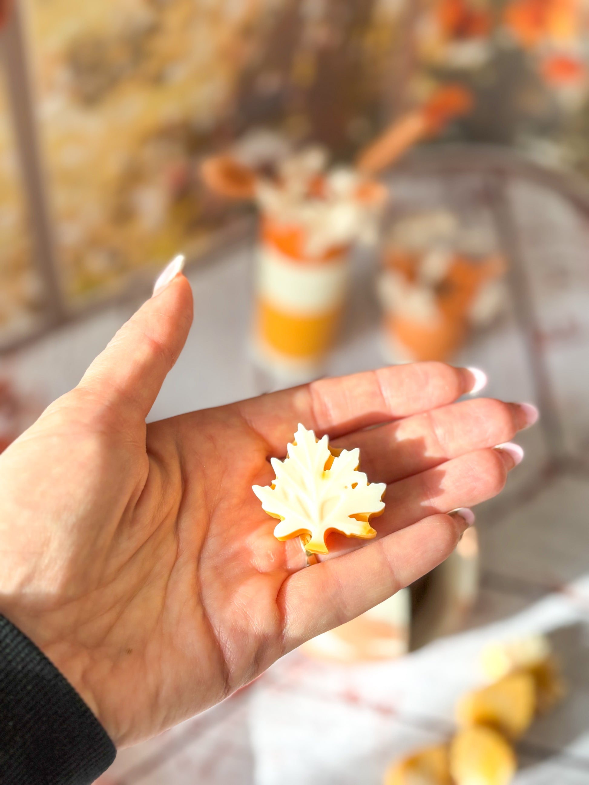 Plongez dans l'atmosphère chaleureuse de l'automne avec mes fondants parfumés en forme de feuilles.