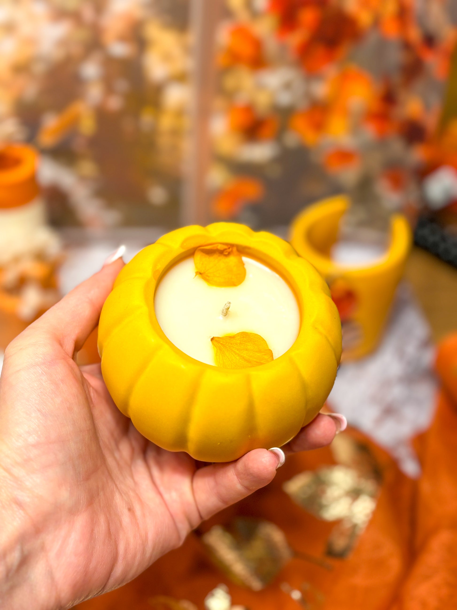 Automne - Combo Bougie citrouille jaune foncé & plateau